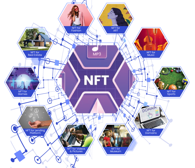 NFTs like music, videogames, artwork, collectibles, etc can be listed on the Non-fungible Token marketplaces. NFT marketplaces can be replicated to enhance the user experience.